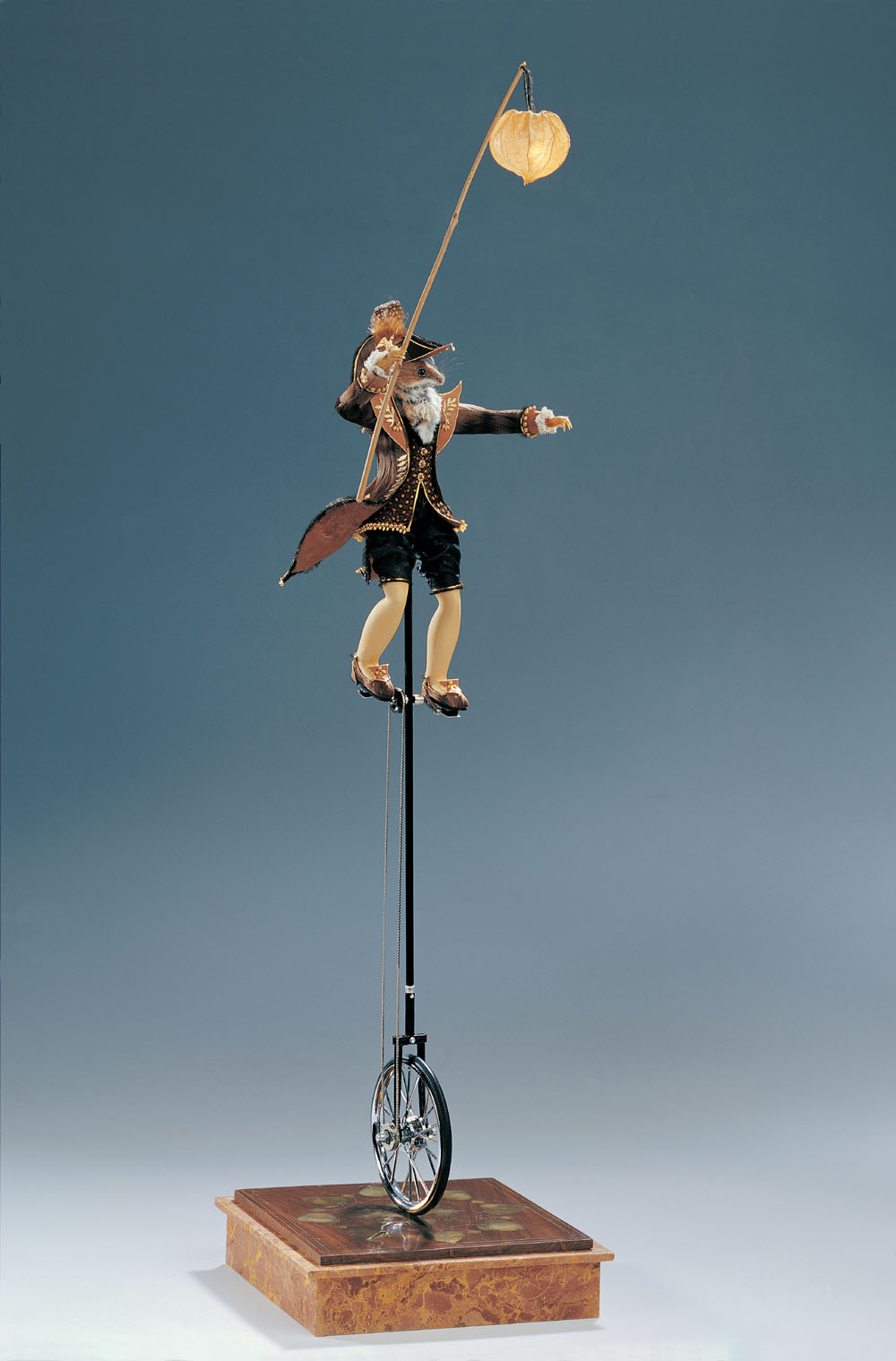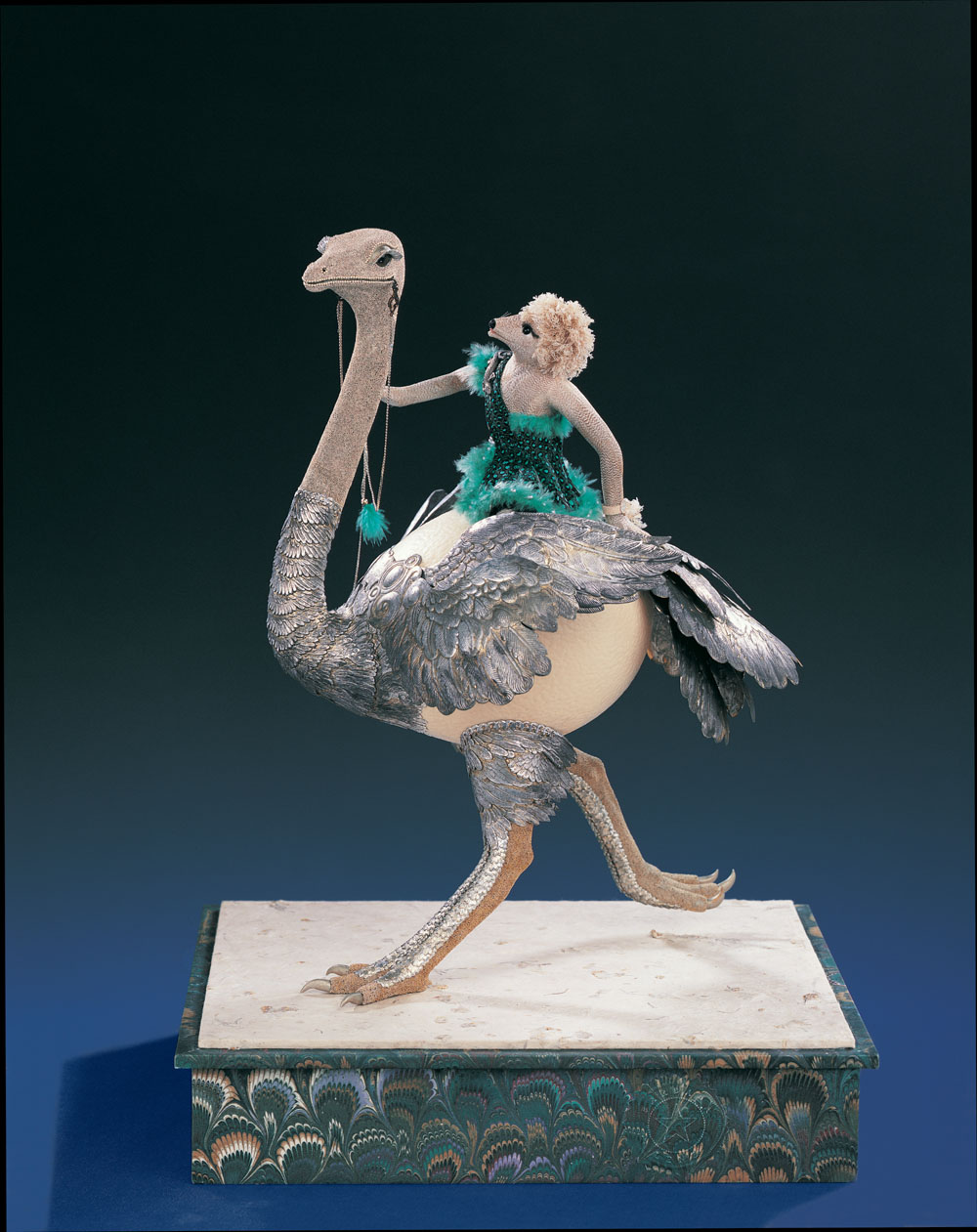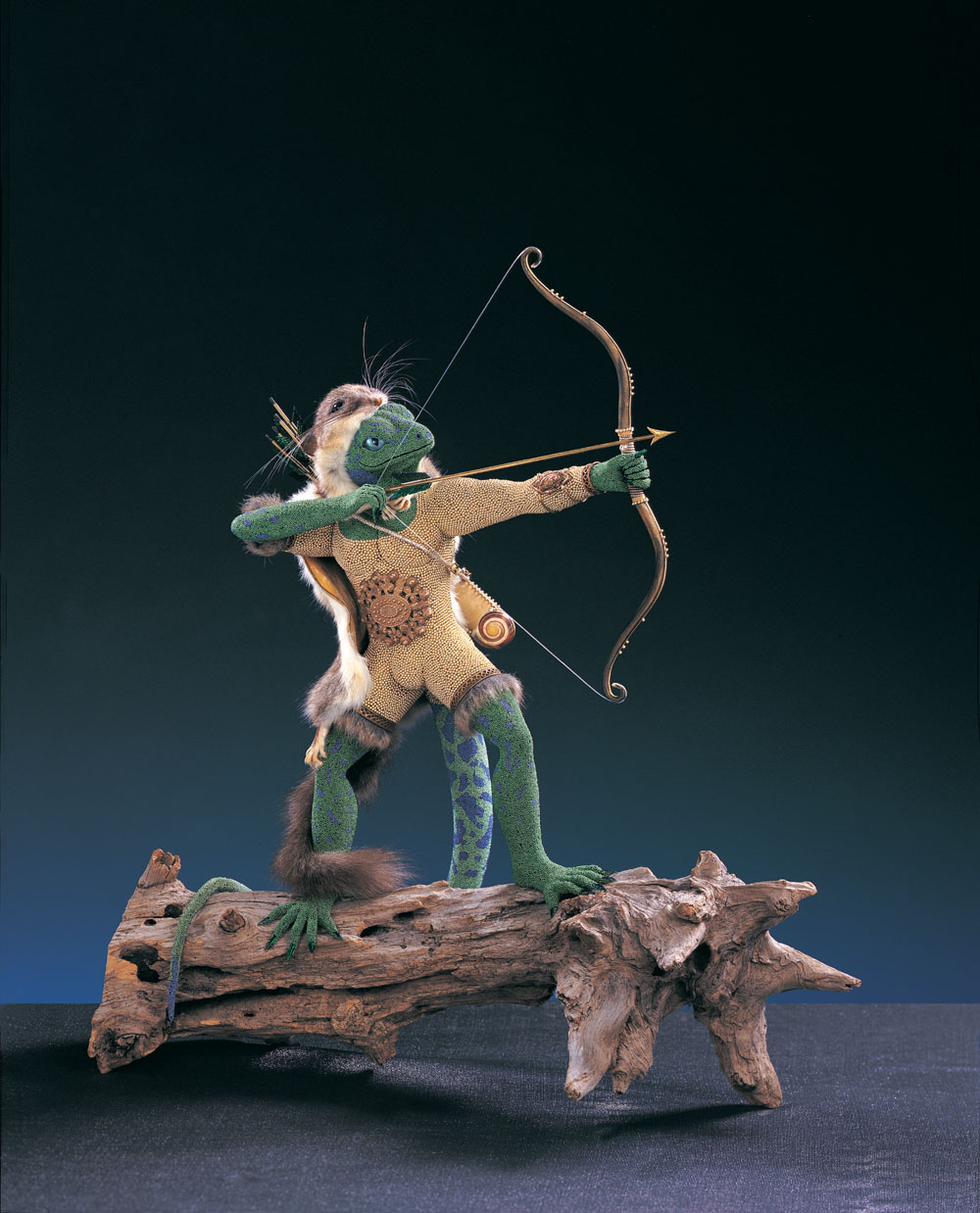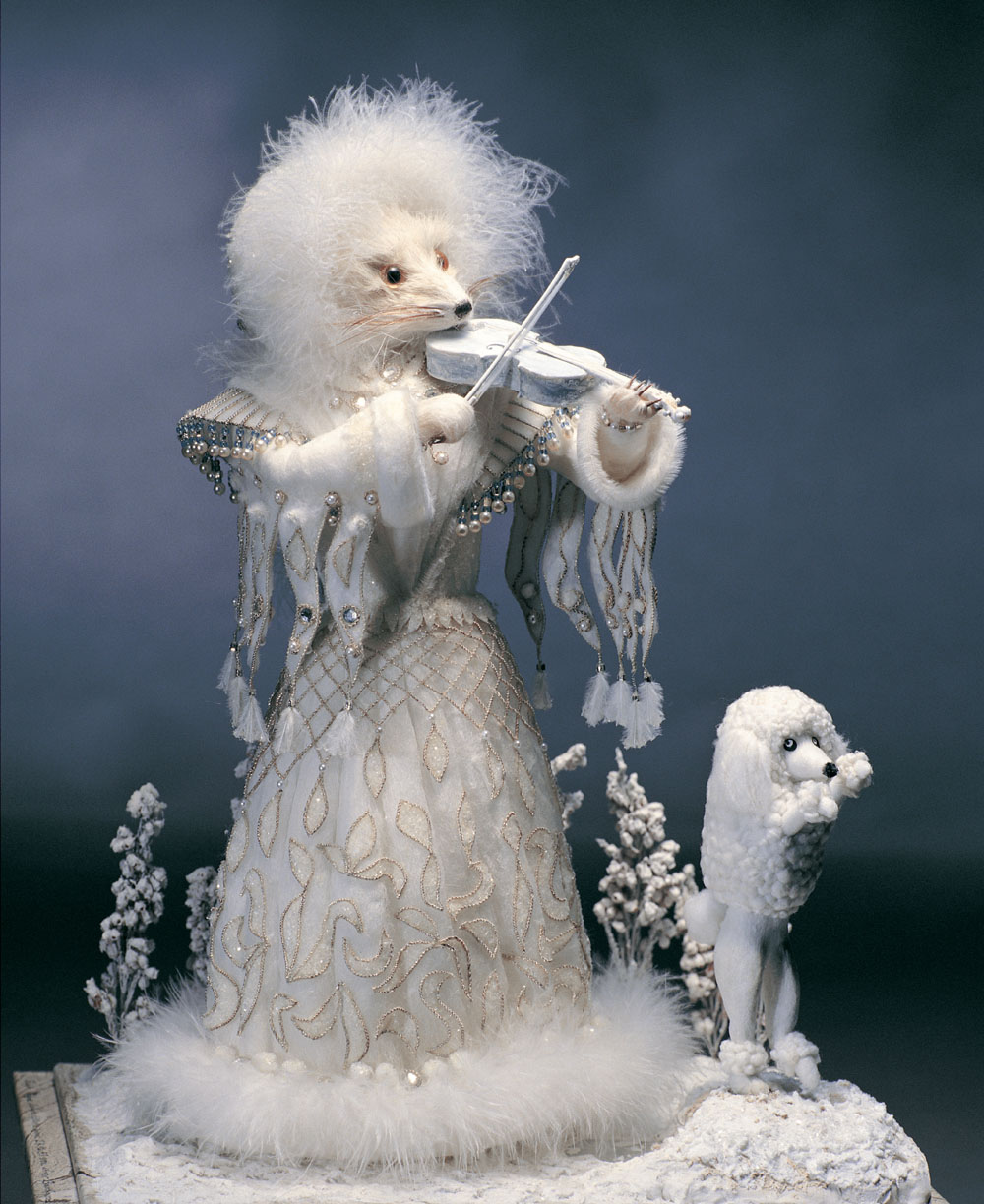 Wochen, manchmal Monate dauert es, bis eine 30 cm große Figur vollendet ist. In den letzten Jahren entstand eine weiterhin kontinuierlich wachsende Sammlung von zauberhaften Kunstobjekten mit unterschiedlichsten thematischen Bezügen. Besonders fasziniert die Übersetzung des uralten Themas vom Verhältnis zwischen Mensch und Tier und die Poesie, mit der diese Wesen den Menschen einen Spiegel vorhalten. Die "Fabelhaften Wesen" überraschen durch ihre Gestik, nicht selten wird im Tiergewand auch ein menschlicher Charakter sichtbar... In den Arbeiten der Künstlerin liegen nicht immer versteckte Botschaften, es sind oft die Freude am Spielen, am Fabulieren, die Lust am Skurrilen, die ihr die Hand führen.